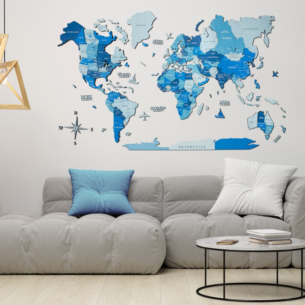 Wooden World Map Azure | The Best Wallmap for Your Home